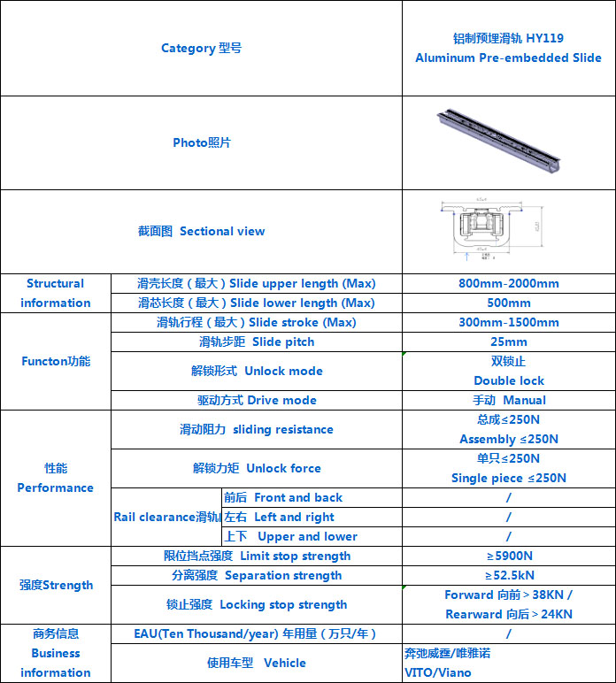 HY119 鋁制預埋滑軌
